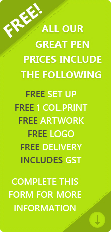 At About Pens, our goal is to assist you with the most hassle free purchase when it comes to promotional pens. That’s why we are one of the few promo pen companies to include all standard costs in our pricing We understand that our customers just want to know the bottom line when it comes to pricing, and we won’t try to fool you into thinking that our prices are lower by omitting the other necessary costs. So set up, one colour print, GST and delivery are all included.